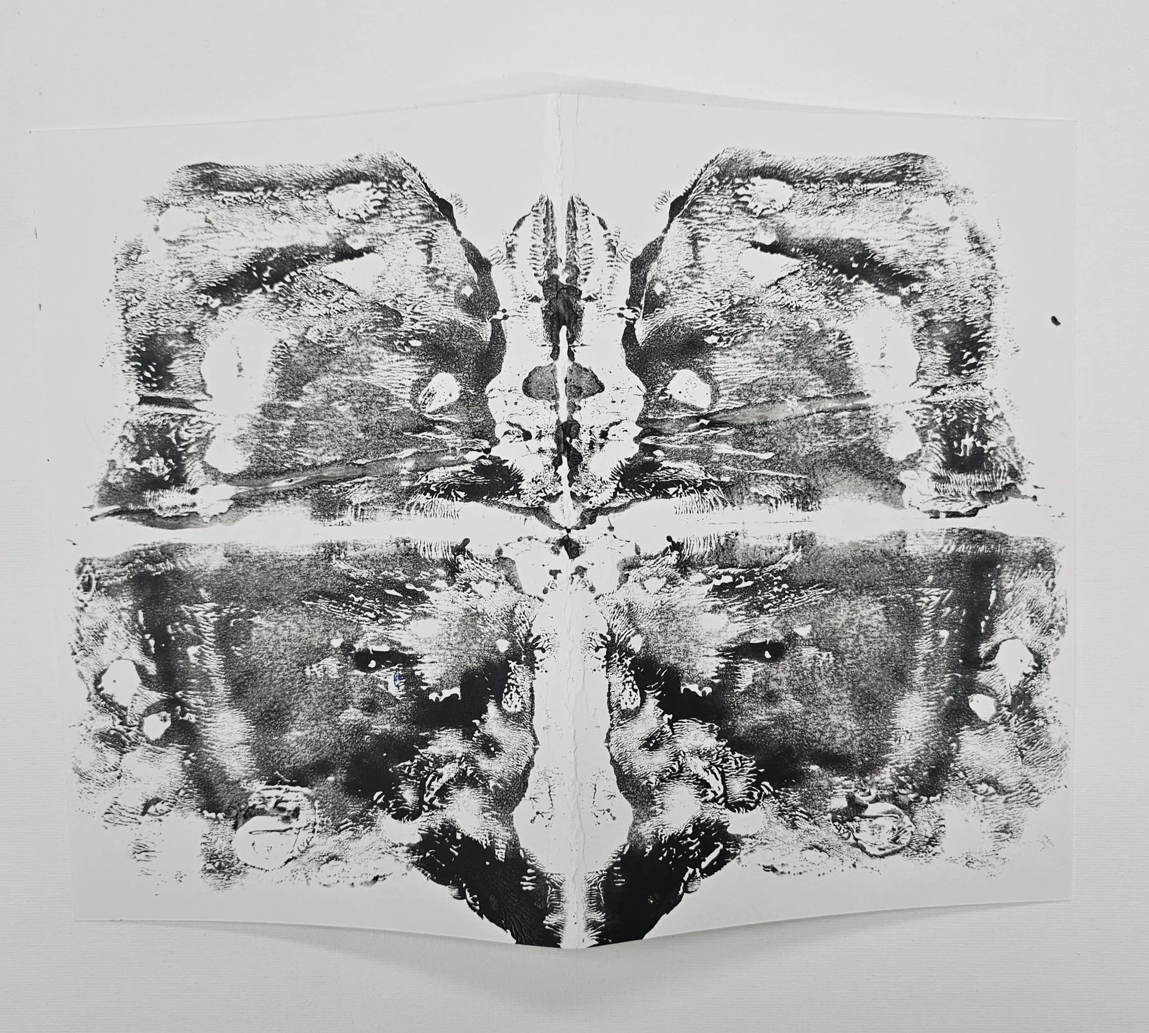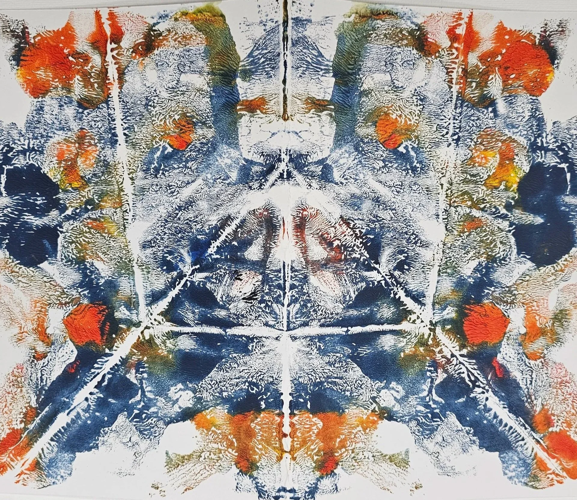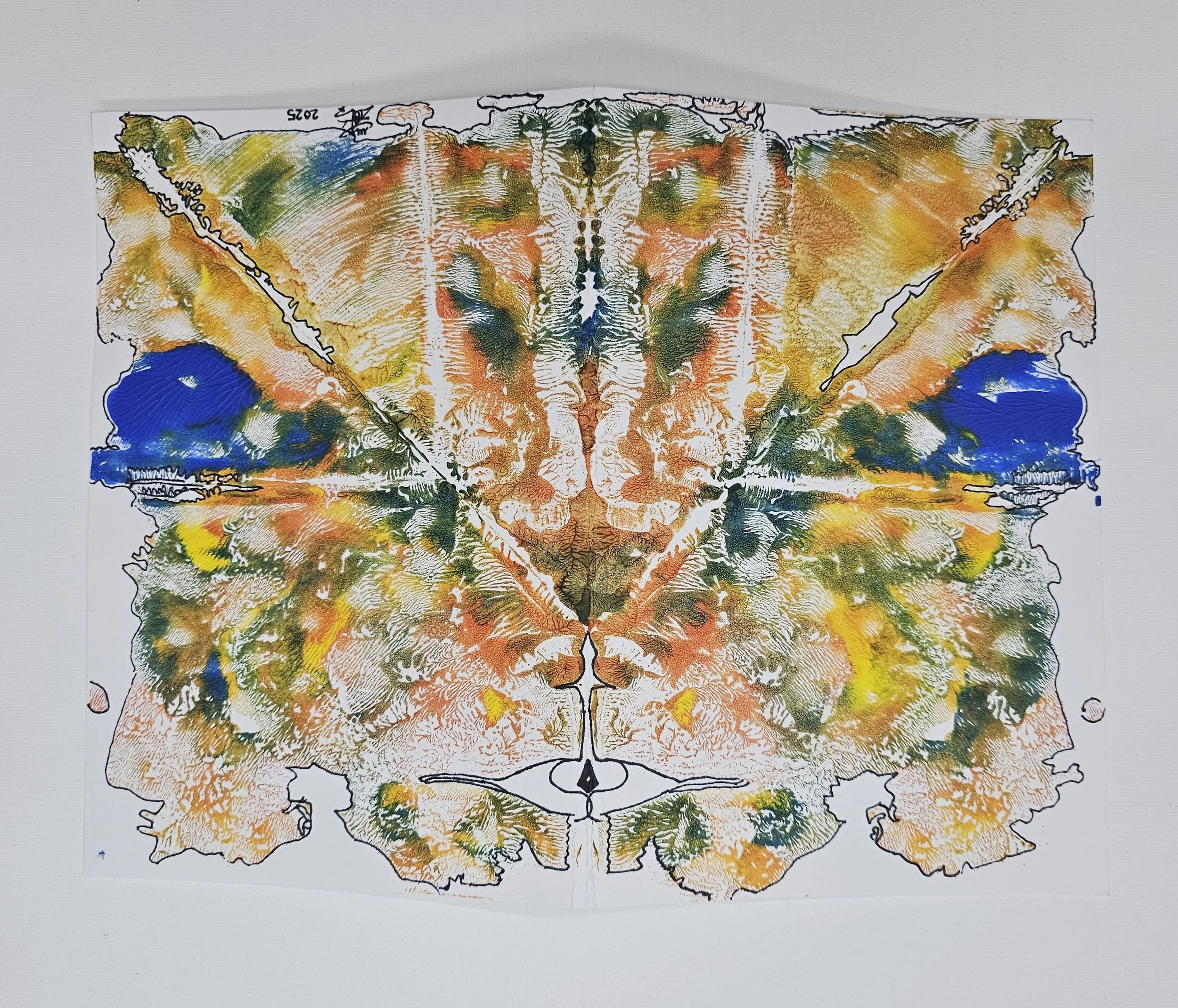 I also accidentally created a Rorschach - one of the only factors I remembered so clearly in Psychology class, or my mom. I became so indulged in this process, I began to take this method to fruition. I taught it to my colleagues, my friends, my family. That day I will never forget, as it made me so mesmerized about the brain and art.